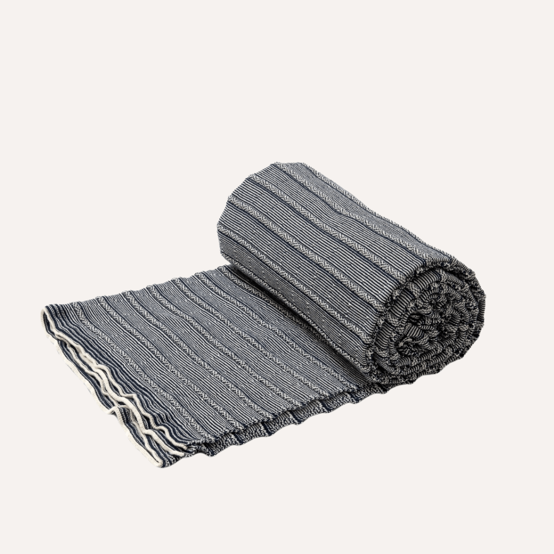 bläanks | Sustainable Rolled Texture Throw Blanket | Marine Blue + Greggio