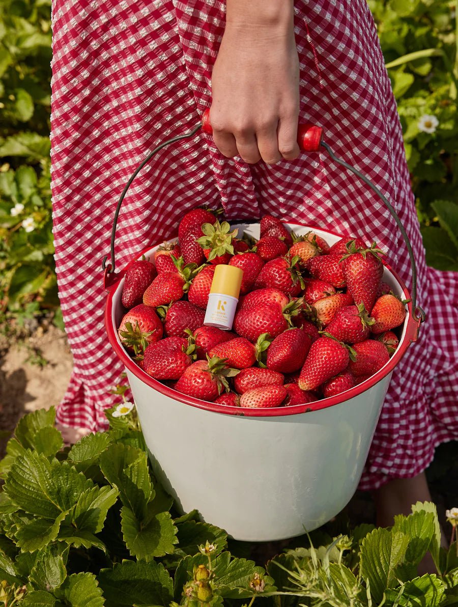 Blend of fruit oils and seed butter, and a fresh-picked flavor (from actual organic strawberries).