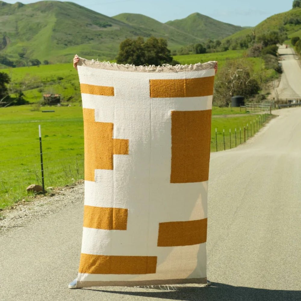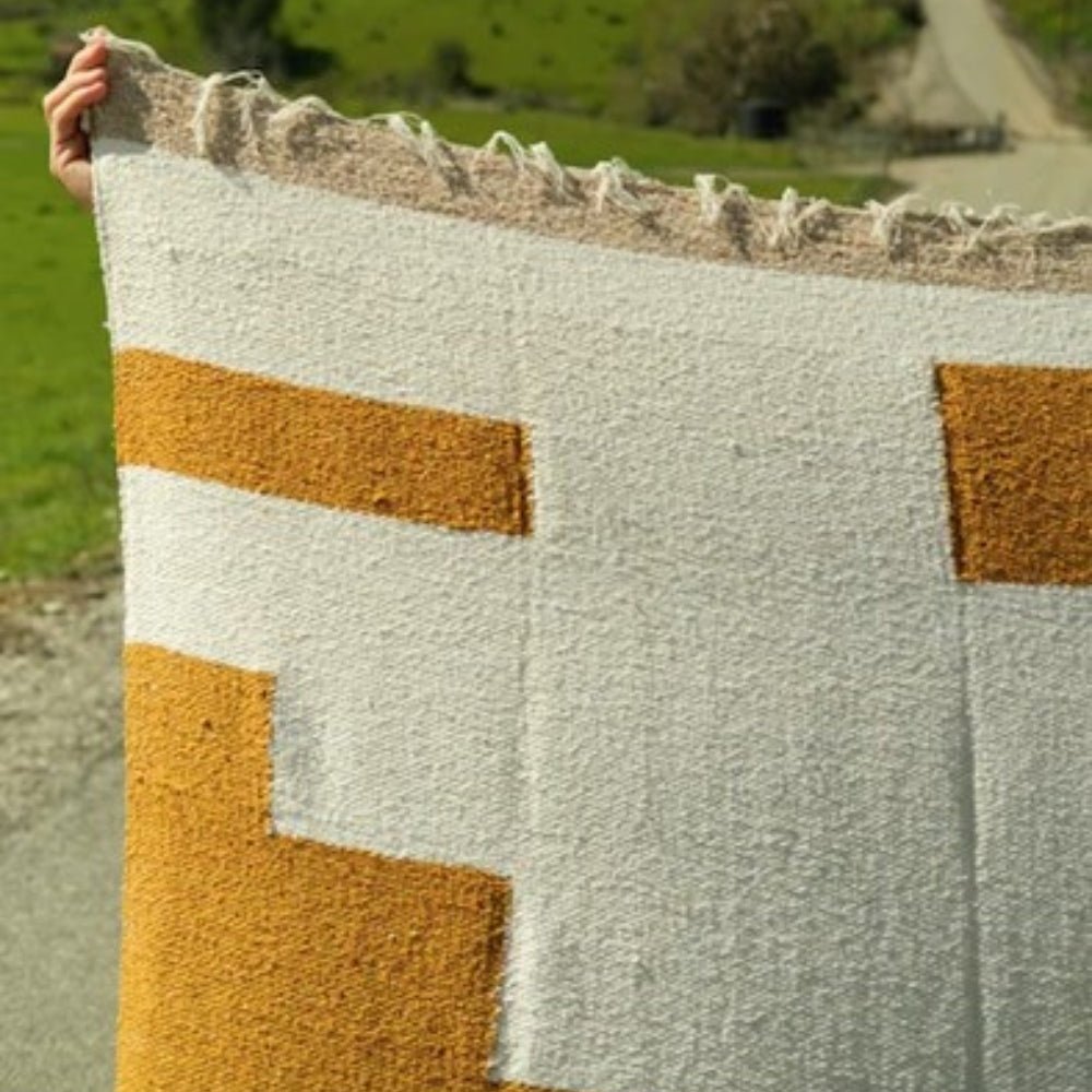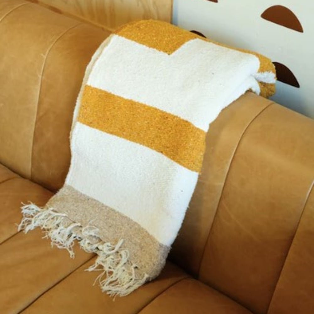 The Gold Cream design is designed to be your go-to throw - perfect for a home accent throw to cuddle up with rugged enough for your weekend adventures up the coast! Tightly woven throws that double as a rug! Designed in California, made in Mexico.